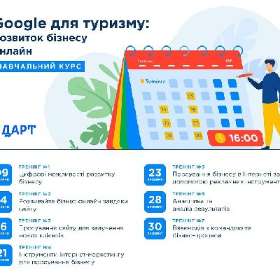 Реєстрація на курс “Google для туризму: розвиток бізнесу онлайн” доступна за посиланням: https://cutt.ly/sWkya8e